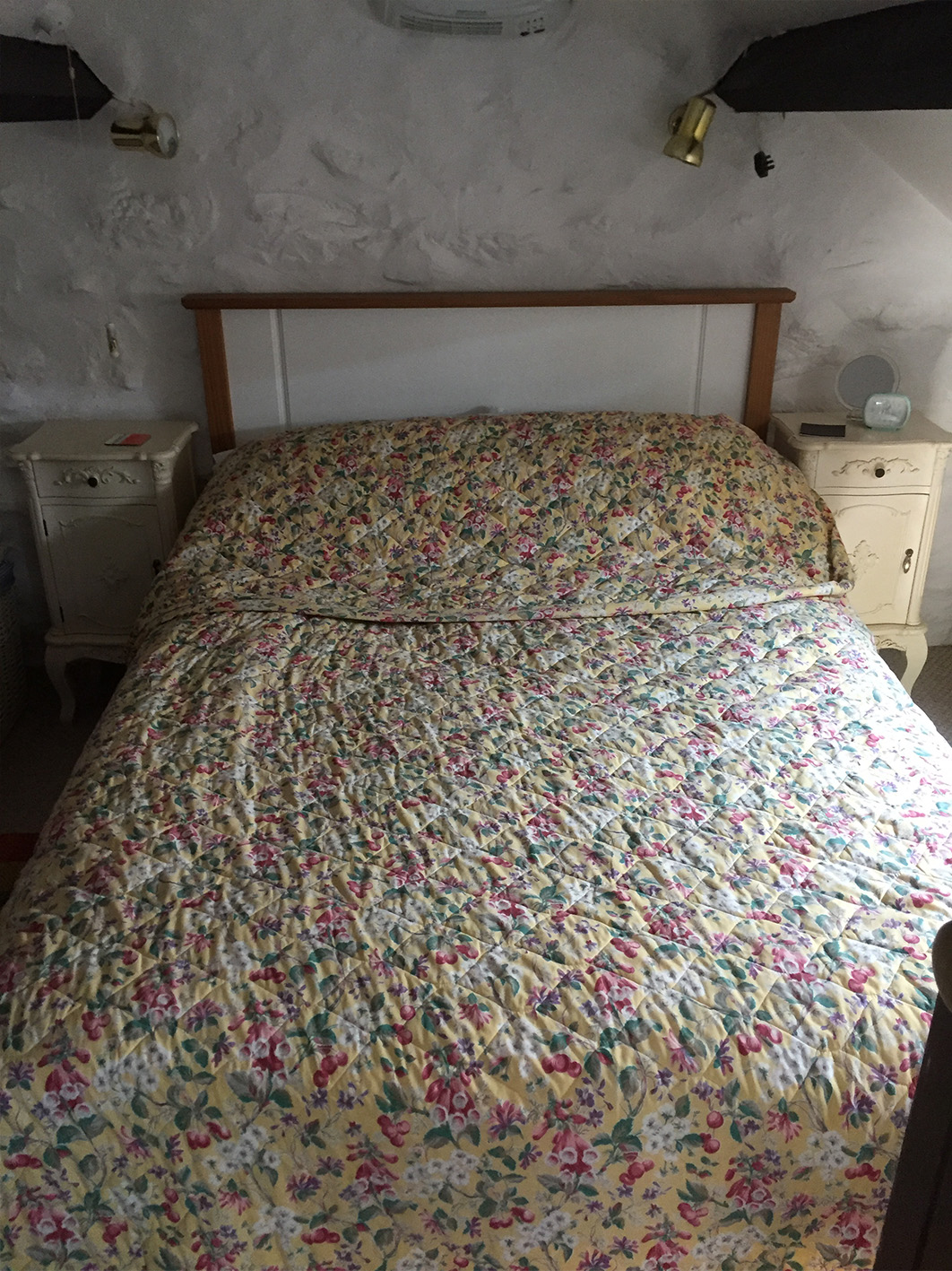 Downstairs bedroom. Sleeps 2. Great views of Mynydd Mawr from the window. Large chest of drawers for storage.